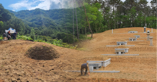 고인을 모실 선영을 조성하거나, 잔디를 다시 입히는 사초, 야생동물의 침입을 막기위한 휀스 설치 등 장법에 맞춰 묘지를 정성스럽게 조성하고 관리하는 작업입니다.