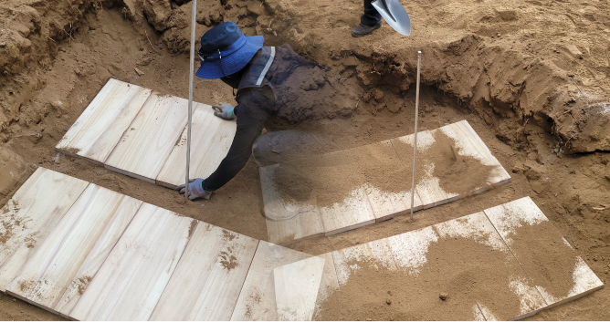 계약한 내용대로 이장 일정에 맞춰 공사를 준비하고, 현장 여건에 맞춰 안전하게 파묘와 유골 수습을 진행하며 고인을 다시 모실 선영(이장지)을 조성합니다. 조성과정에서 고객님의 요청사항을 잘 반영하여 조성합니다.